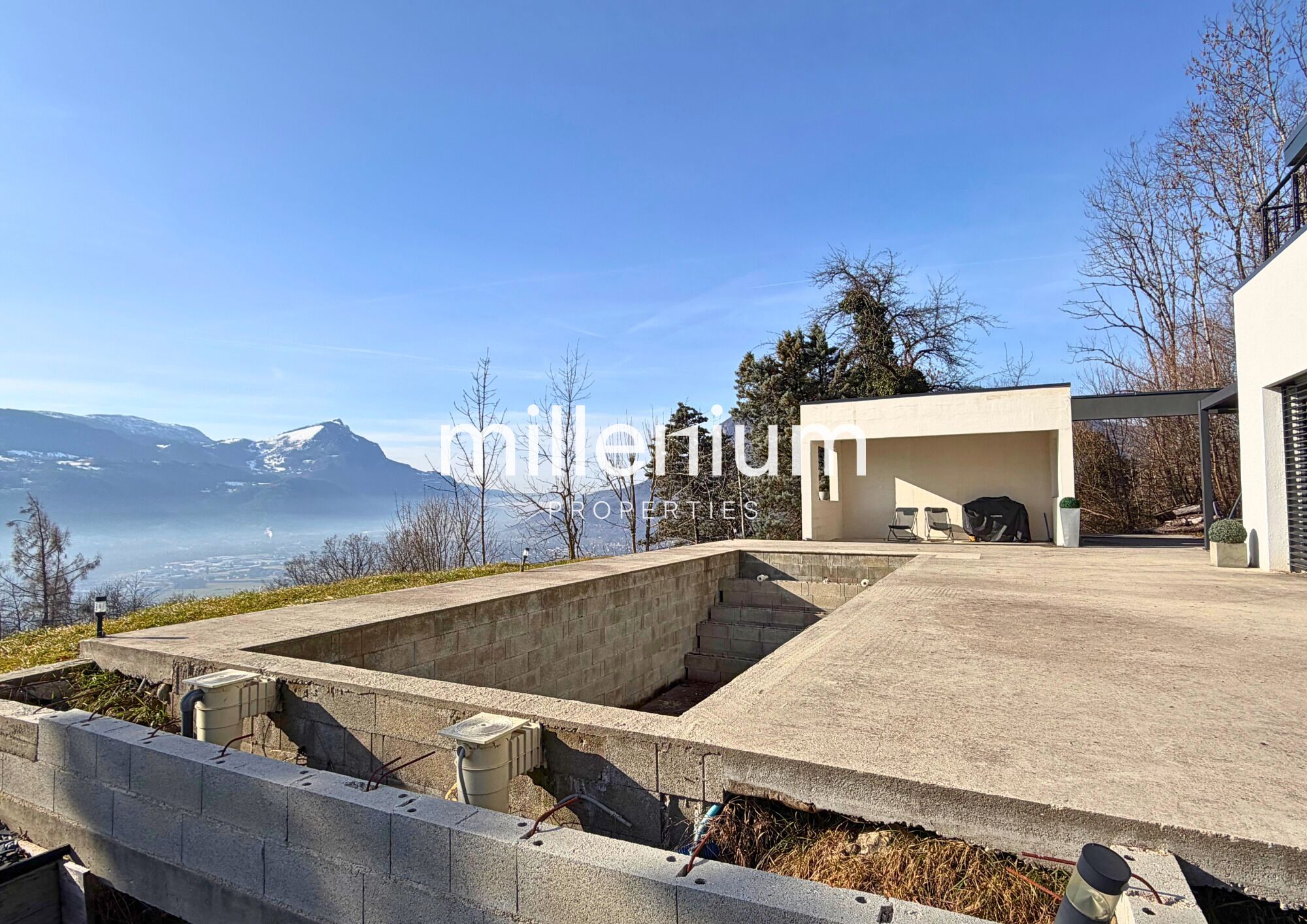 Implantée sur un vaste terrain d’environ 2 100 m², la propriété bénéficie d’une vue panoramique à couper le souffle sur les majestueux sommets environnants et sur la vallée.