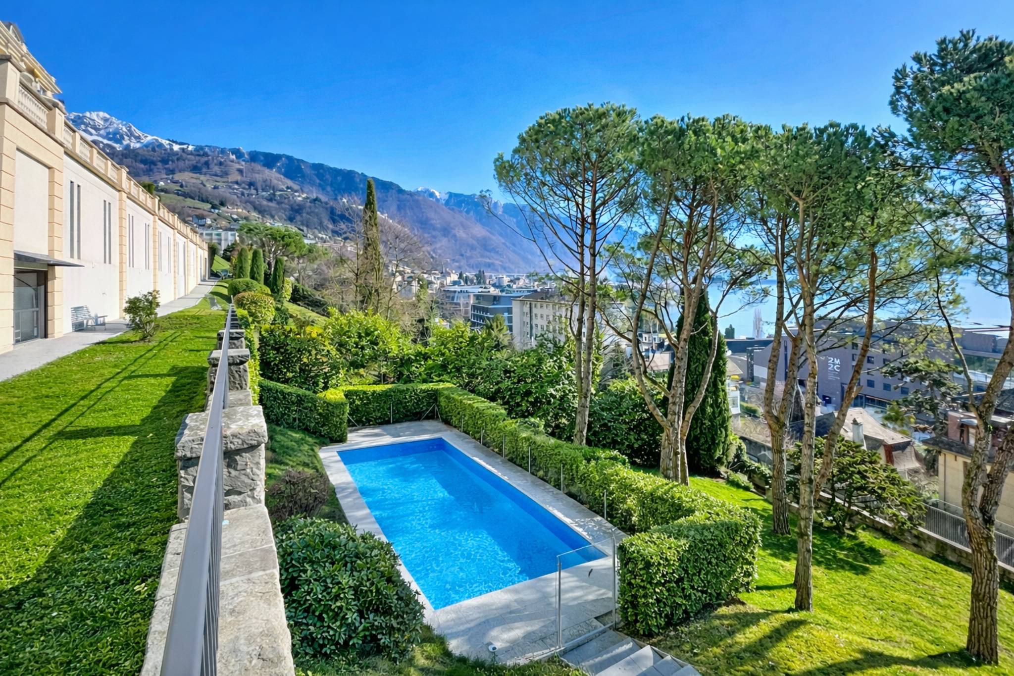 Situé au dernier étage d’une élégante résidence de standing d’inspiration Belle Époque, édifiée en 2008 au cœur de Montreux, ce somptueux attique en duplex offre environ 240 m² de surface pondérée (dont 199 m² habitables, complétés par 116 m² de terrasse et 3.6 m² de balcon). Il bénéficie d’un emplacement privilégié, à proximité immédiate de toutes les commodités, ainsi que d’une vue panoramique spectaculaire sur l’ensemble du bassin lémanique. L’ascenseur dessert directement l’appartement et permet un accès privatif à chacun des deux niveaux.
