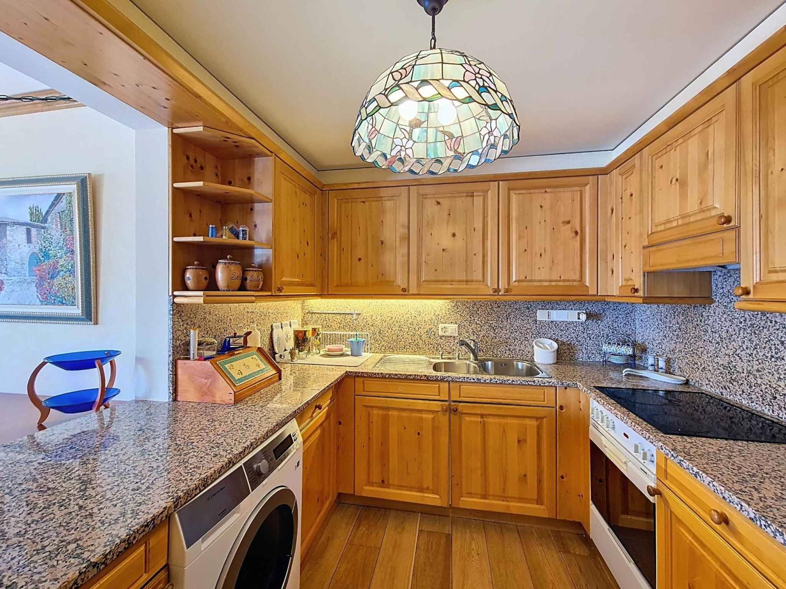 Une place de parc dans le garage souterrain, deux caves ainsi que deux casiers à ski complètent ce bien.