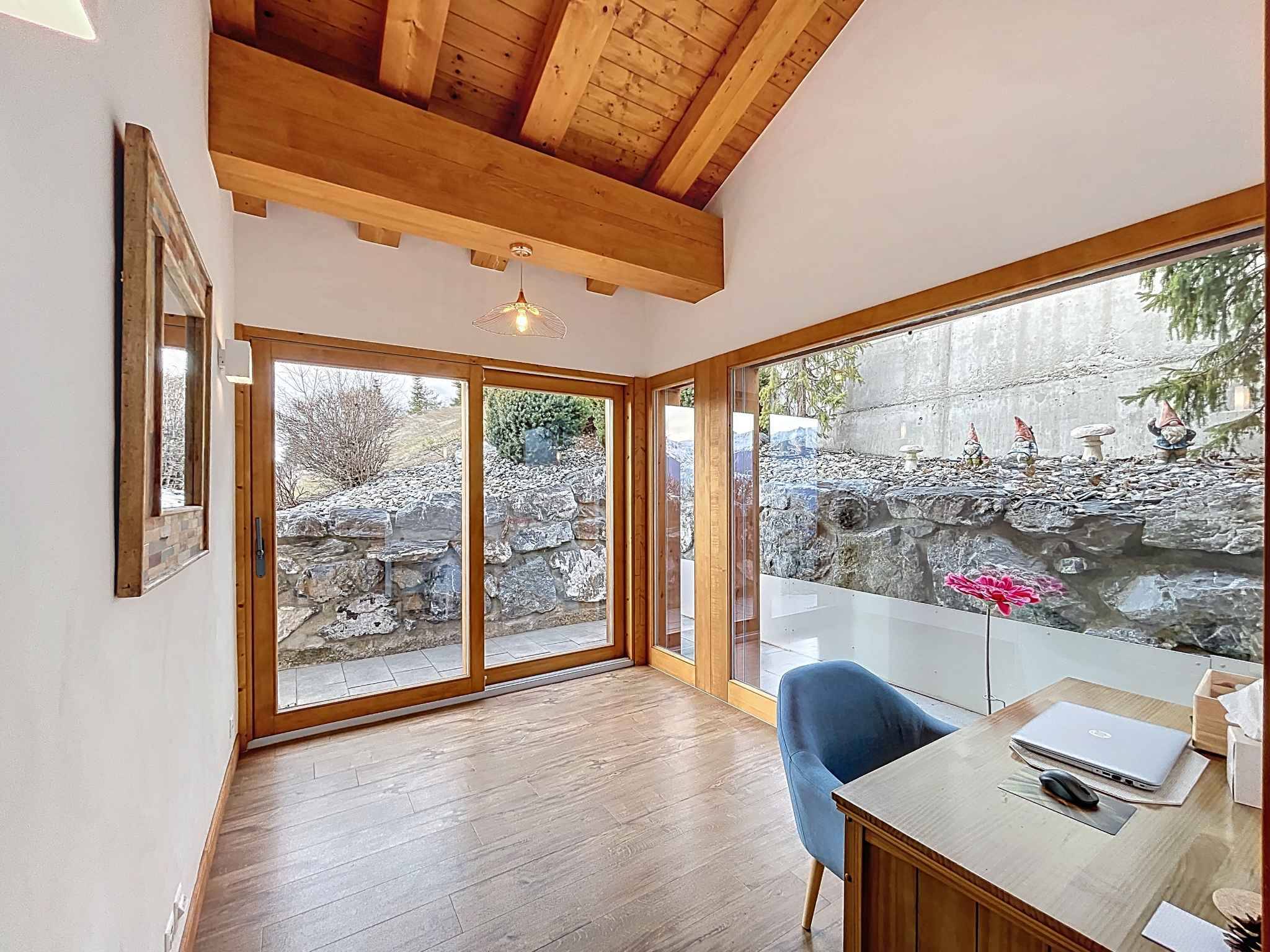 Réparti sur trois niveaux avec ascenseur, ce chalet soigné à l’architecture traditionnelle en bois et toiture en pierre a été conçu avec goût et fonctionnalité. En excellent état général et offrant une disposition idéale, il comprend notamment de belles chambres, un vaste séjour/salle à manger et cuisine, ainsi que la possibilité d’aménager un espace supplémentaire au rez-de-chaussée selon vos besoins (ex: studio indépendant, salle de sport etc).