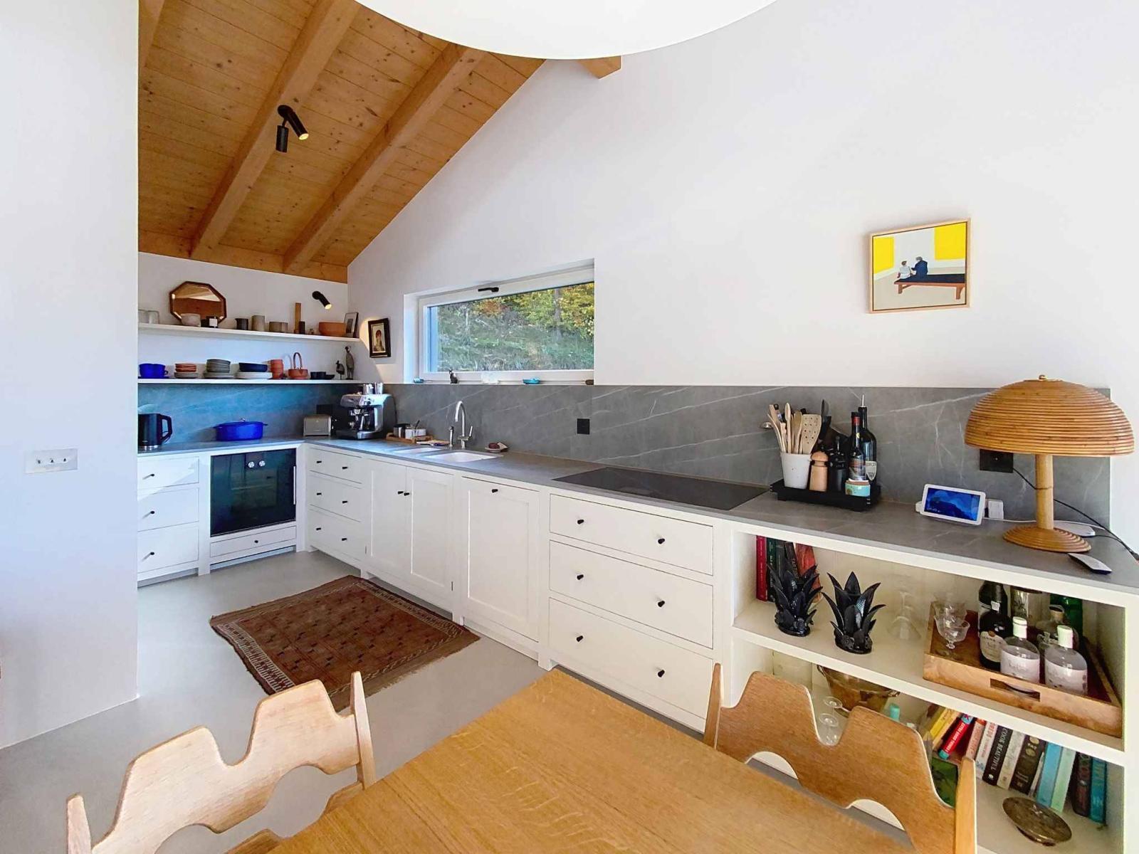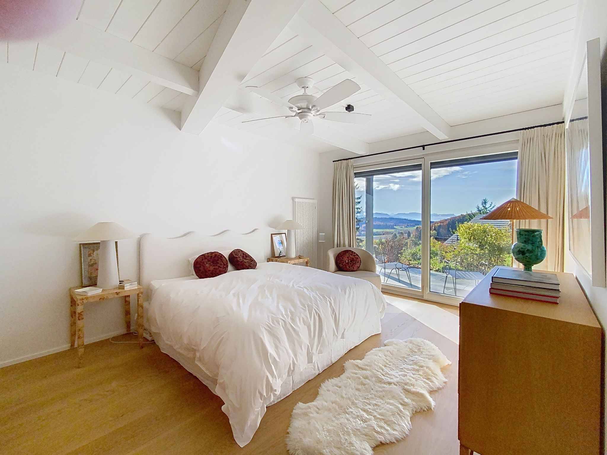 Édifiée sur une parcelle de plus de 3’000 m², elle propose de beaux volumes totalisant environ 200 m² de surface utile. De larges baies vitrées baignent les espaces de lumière naturelle, créant une atmosphère à la fois chaleureuse et contemporaine.