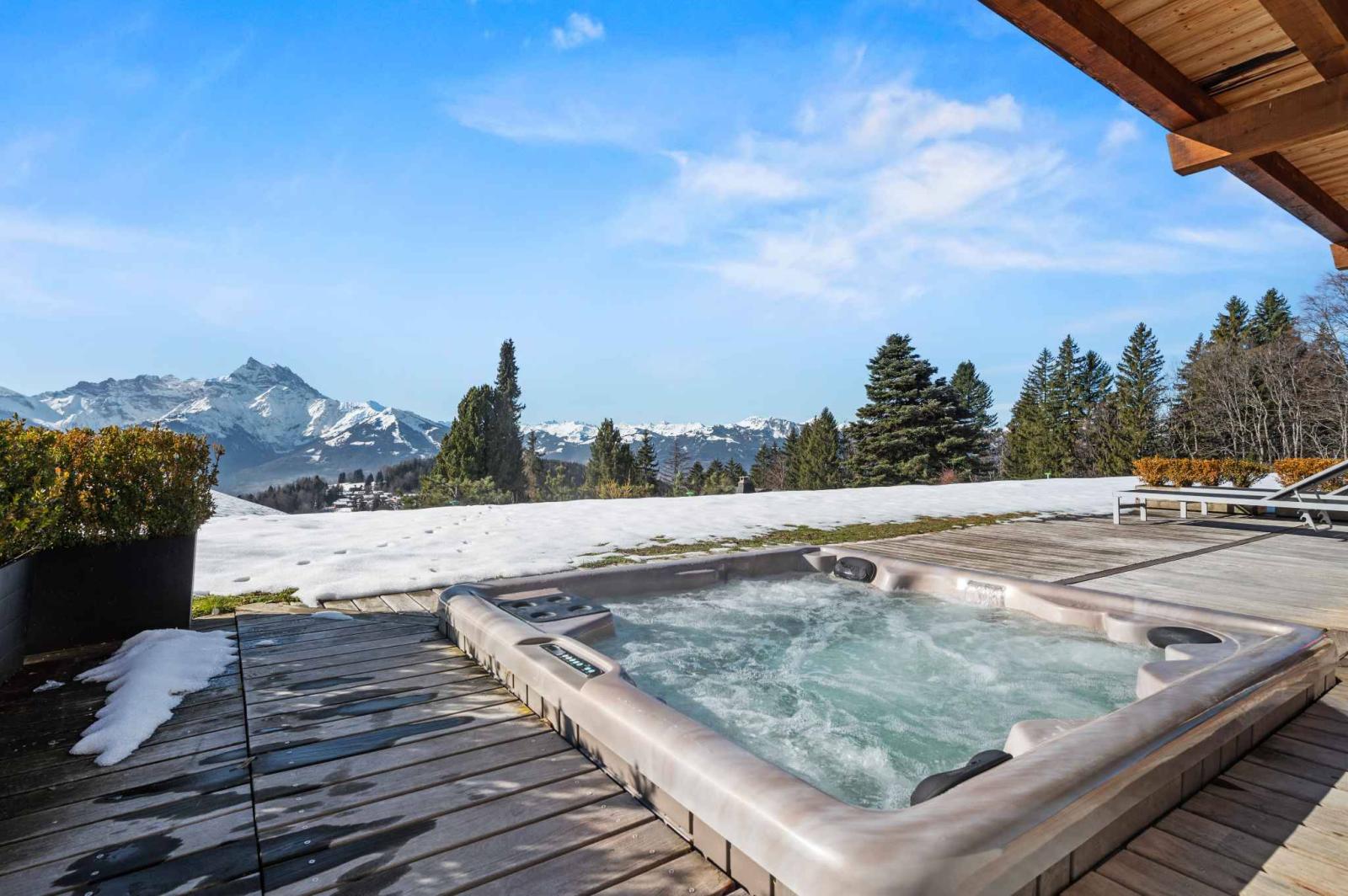 L’espace bien-être, digne des plus belles résidences hôtelières, réunit une grande piscine intérieure, un hammam et un jacuzzi extérieur face aux montagnes.