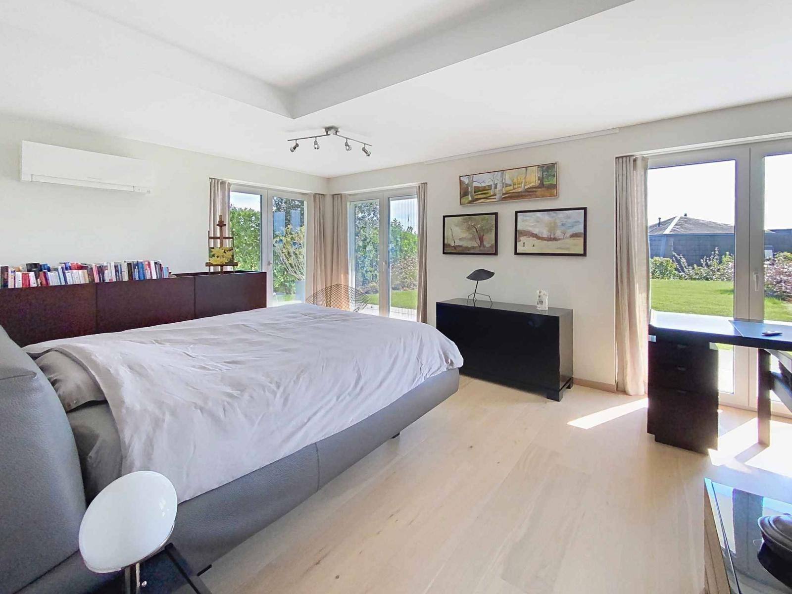 L’espace principal accueille un salon chaleureux, une salle à manger élégante ainsi qu’une cuisine ouverte entièrement équipée avec électroménager Gaggenau. La terrasse, qui ceinture tout l’étage, prolonge harmonieusement l’espace intérieur et invite à profiter pleinement de la vue. Une chambre avec dressing et salle de bains attenante complète ce niveau, tout comme un WC visiteurs et une élégante mezzanine aménagée en bureau-bibliothèque.