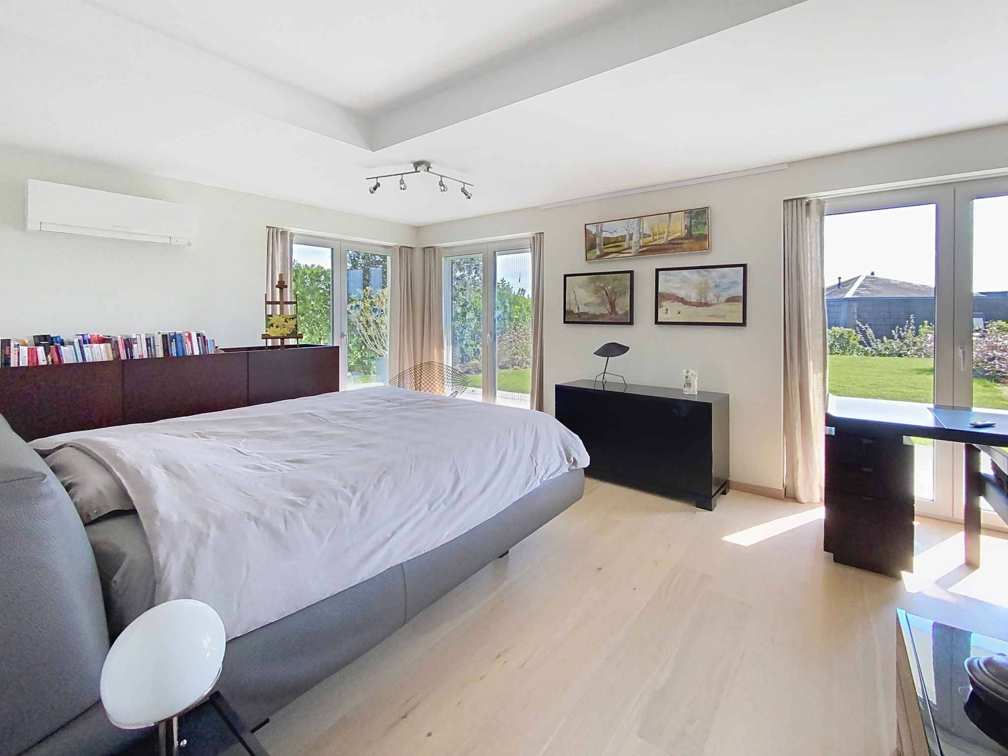 Au rez-de-jardin, la suite parentale séduit par son dressing, sa salle de douche privative et son accès direct au jardin. Trois autres chambres, chacune avec salle de douche en suite, prolongent cette atmosphère intime et raffinée. Ce niveau comprend également une chambre supplémentaire polyvalente, une buanderie et un garage double.