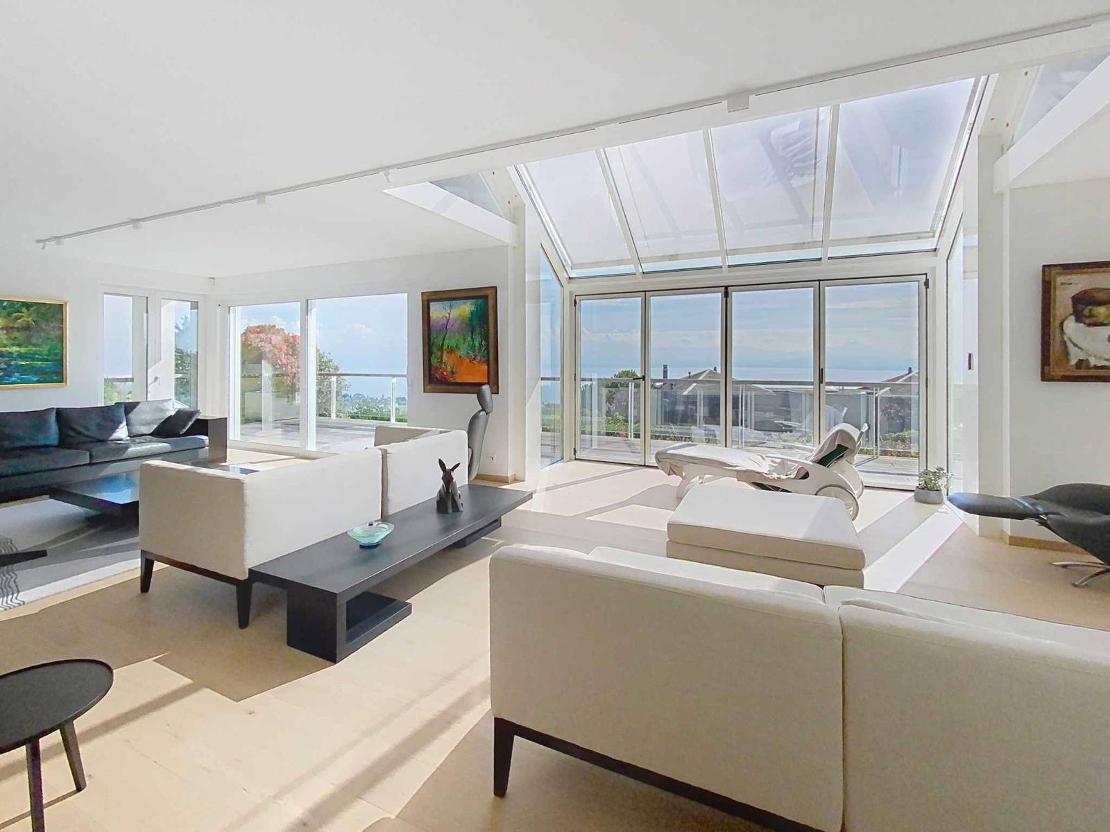 Rénovée en 2023 avec des matériaux nobles et des équipements haut de gamme, cette villa contemporaine conjugue élégance, confort et technologies de pointe. Dès l’entrée, une vaste pièce de vie baignée de lumière séduit par ses baies vitrées qui s’ouvrent sur un panorama unique à 180° embrassant le lac Léman et le Mont-Blanc. Les volumes généreux, l’architecture épurée et les finitions soignées créent une atmosphère à la fois raffinée et apaisante.