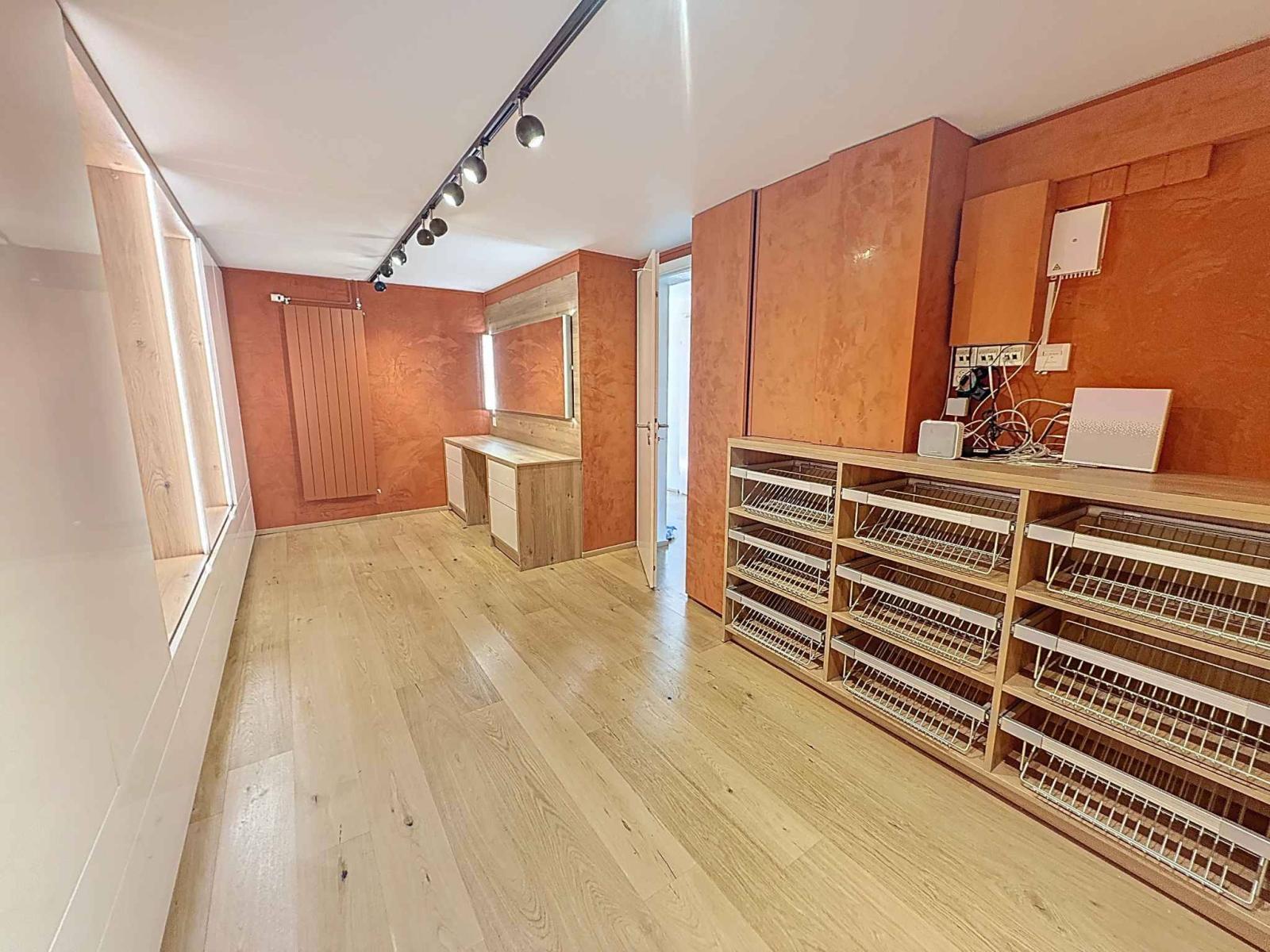 Construite en demi-niveaux, elle se compose d'une entrée avec armoires, d'une salle de douche et d'une chambre à coucher. Quelques marches plus bas, se trouvent, un bel espace polyvalent composé de 2 pièces en enfilade et de la buanderie.
