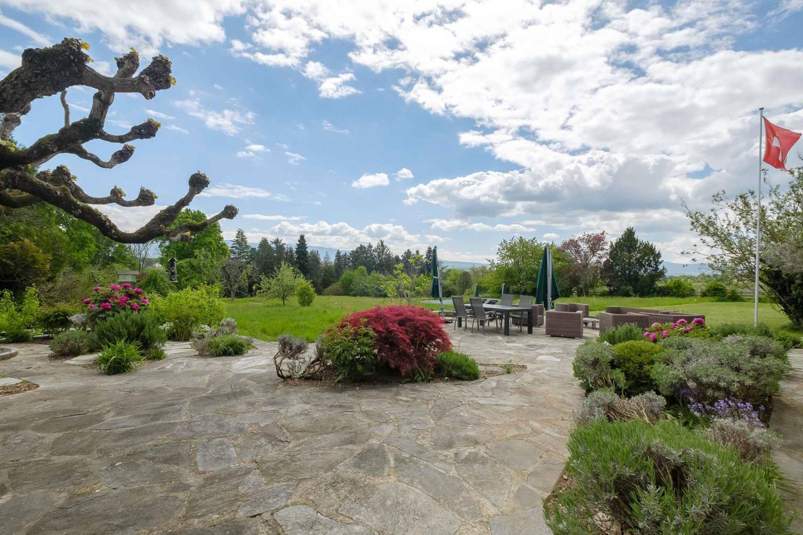 Implantée sur un parc paysager de près de 17'000 m², soigneusement arboré et orné d’une agréable piscine, cette demeure offre un cadre de vie exceptionnel.