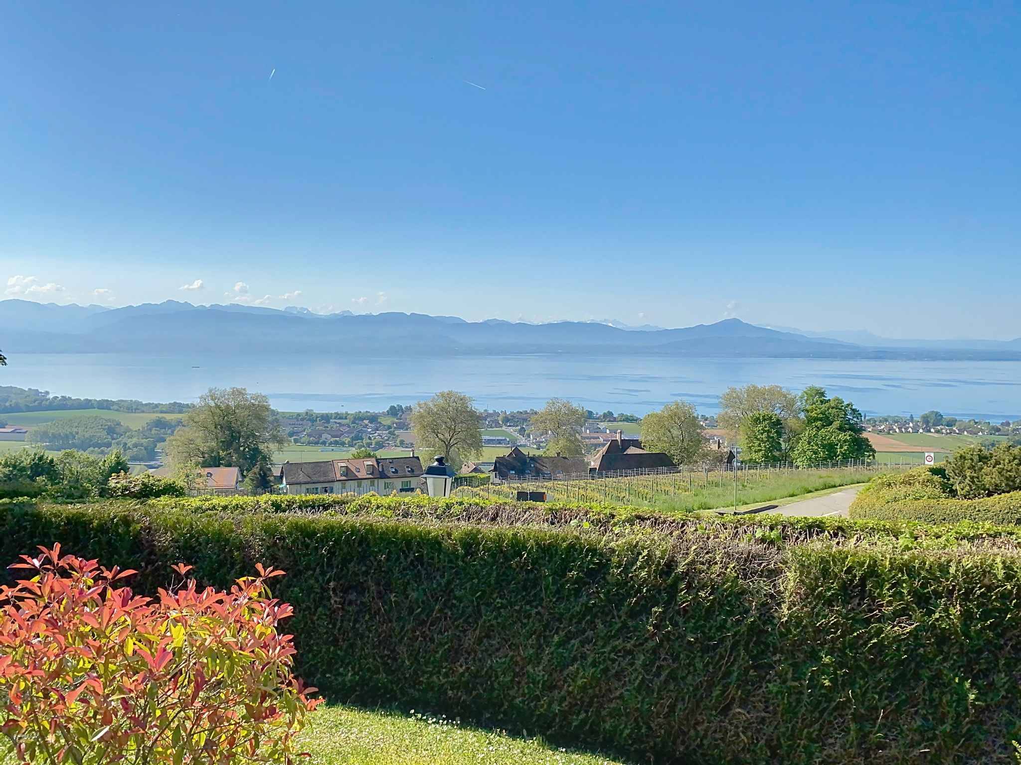 • Grande terrasse : Vue sur les vignobles, le lac et les montagnes, idéale pour les repas extérieurs.