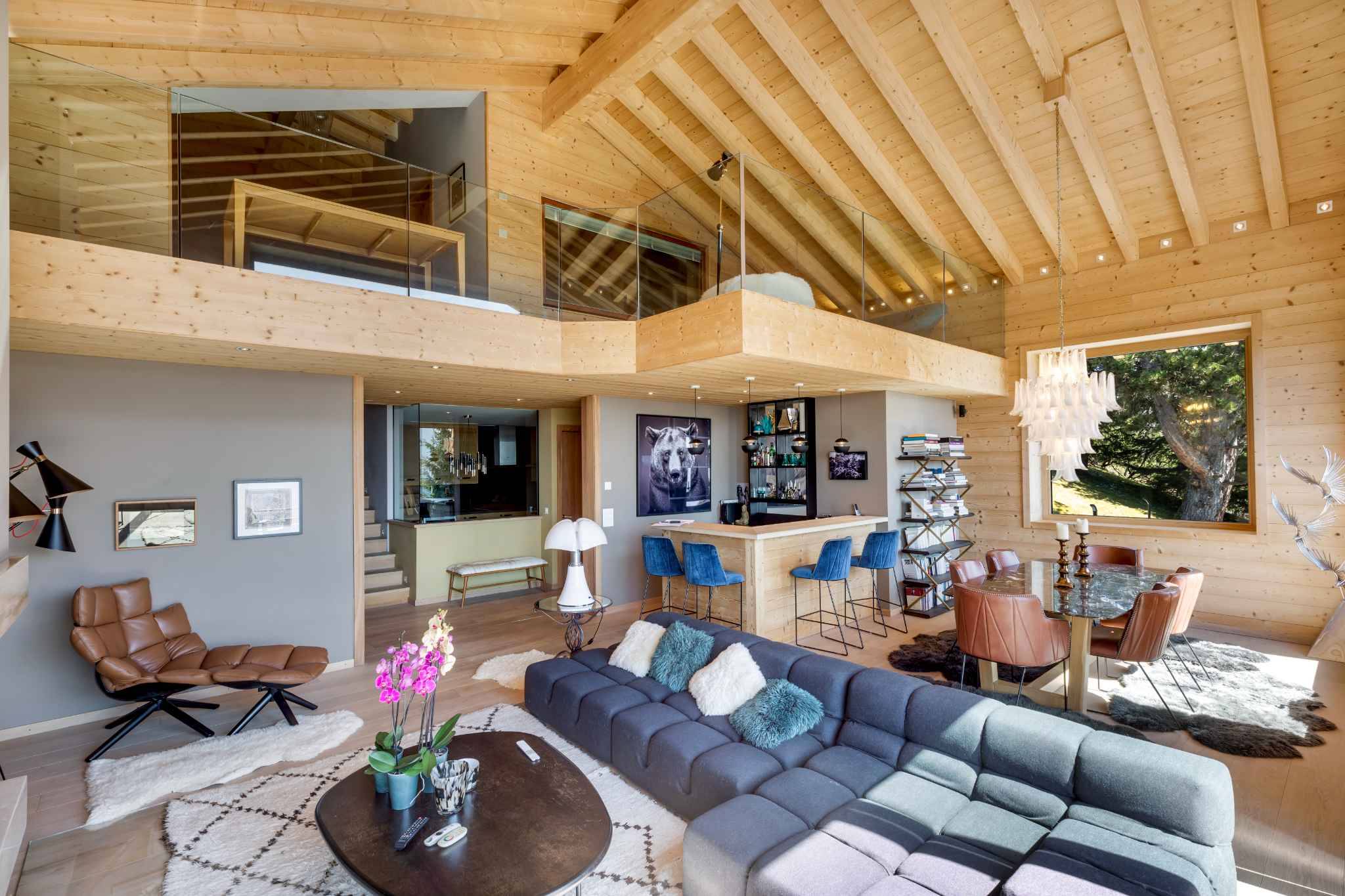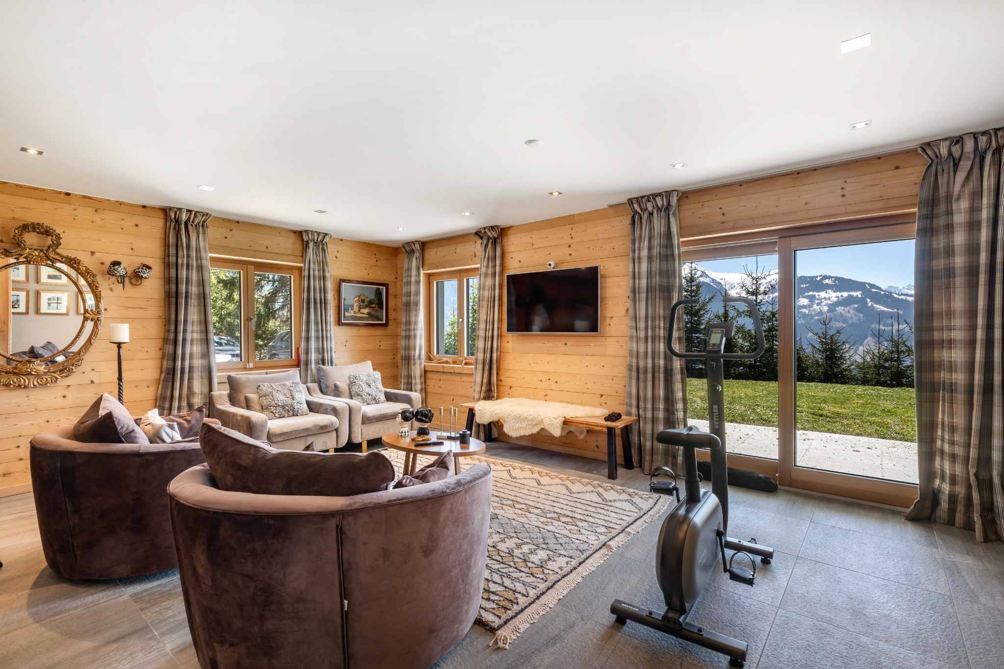Grâce à de larges baies vitrées, l’architecture du chalet a été minutieusement pensée afin que chaque pièce bénéficie d’une vue exceptionnelle sur la nature et sur les Dents du Midi, tandis que l’orientation plein Sud assure un ensoleillement optimal du lever au coucher du soleil, sans vis-à-vis ni nuisance.