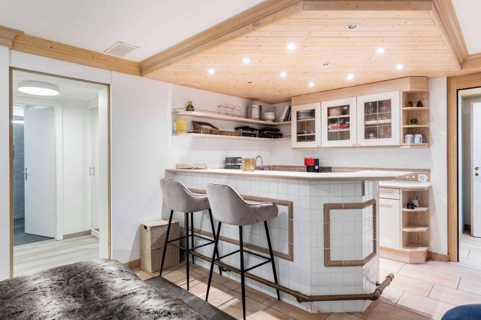 Un studio totalement indépendant offre une solution idéale pour accueillir famille ou personnel en toute discrétion.