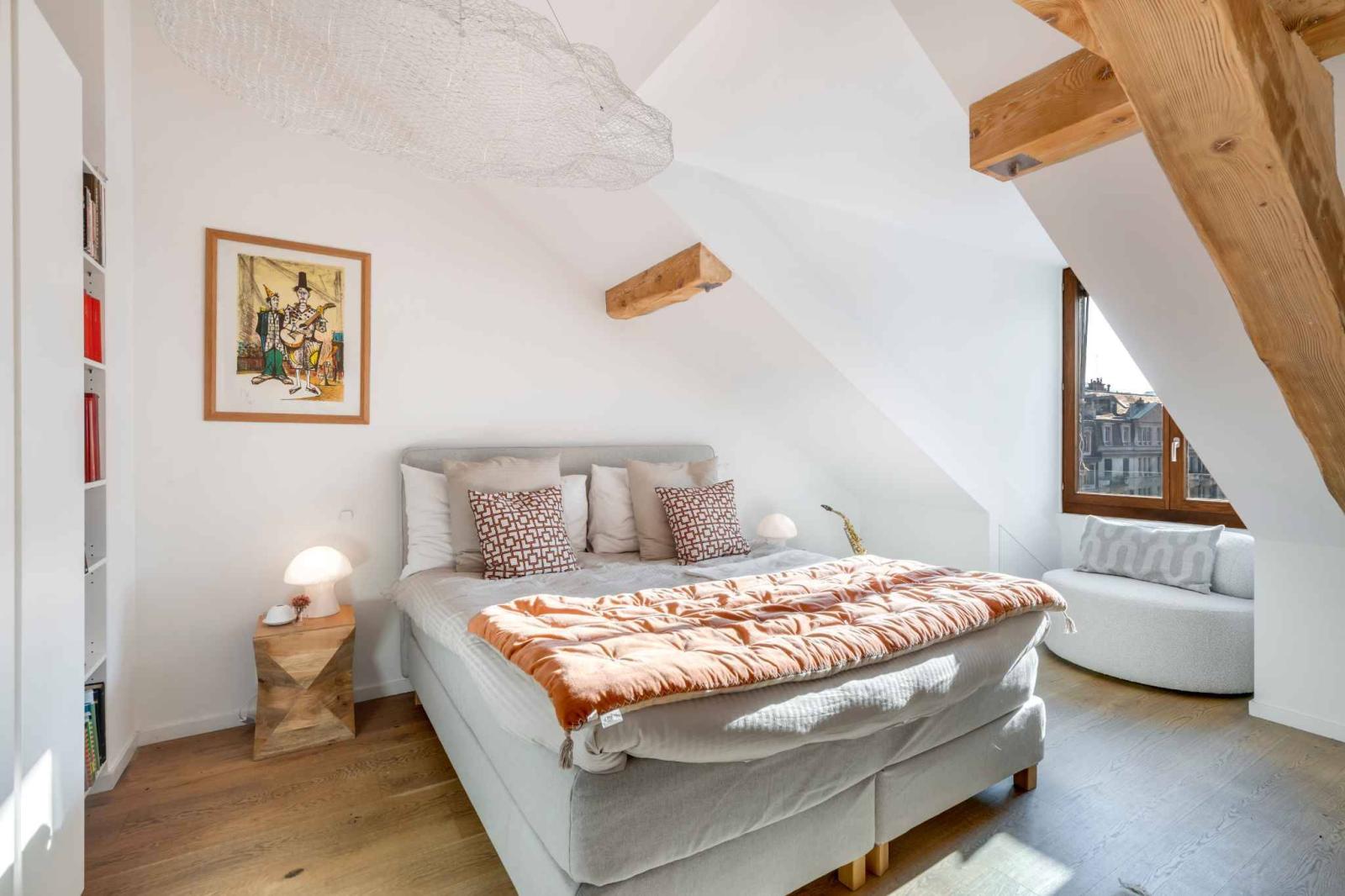 Cet appartement de standing se situe au dernier étage d’un magnifique immeuble de caractère. Entièrement rénové avec des matériaux haut de gamme, il offre un cadre de vie unique alliant charme et modernité.