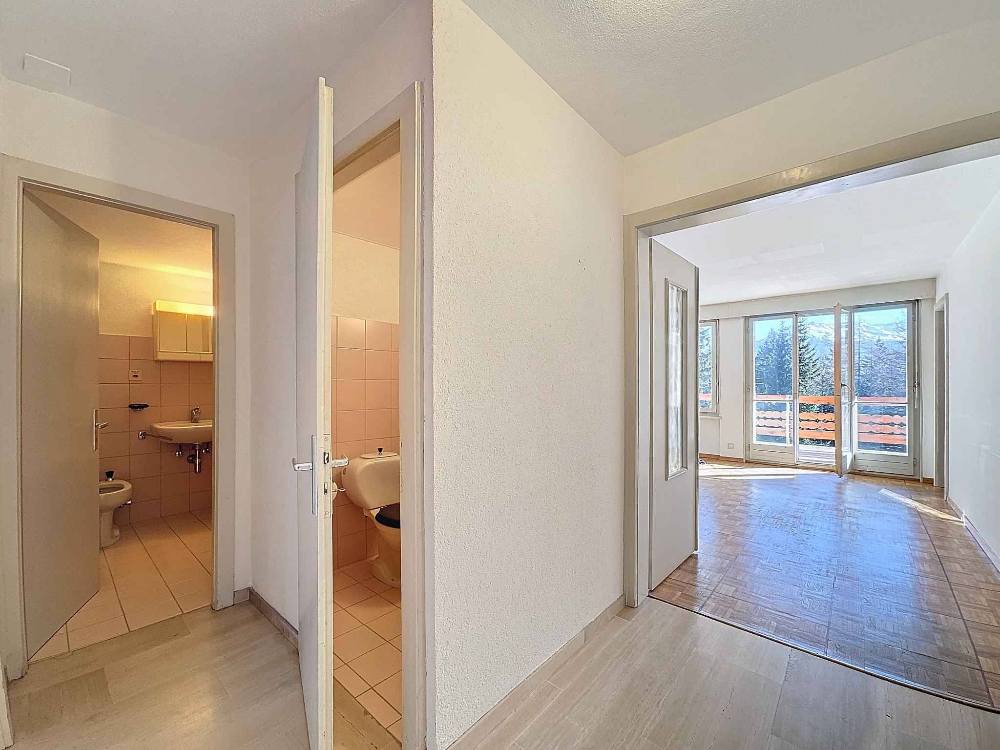 Cet appartement traversant et lumineux est situé à l'entrée de Crans, à proximité du centre, au calme, dans une rue sans issue.