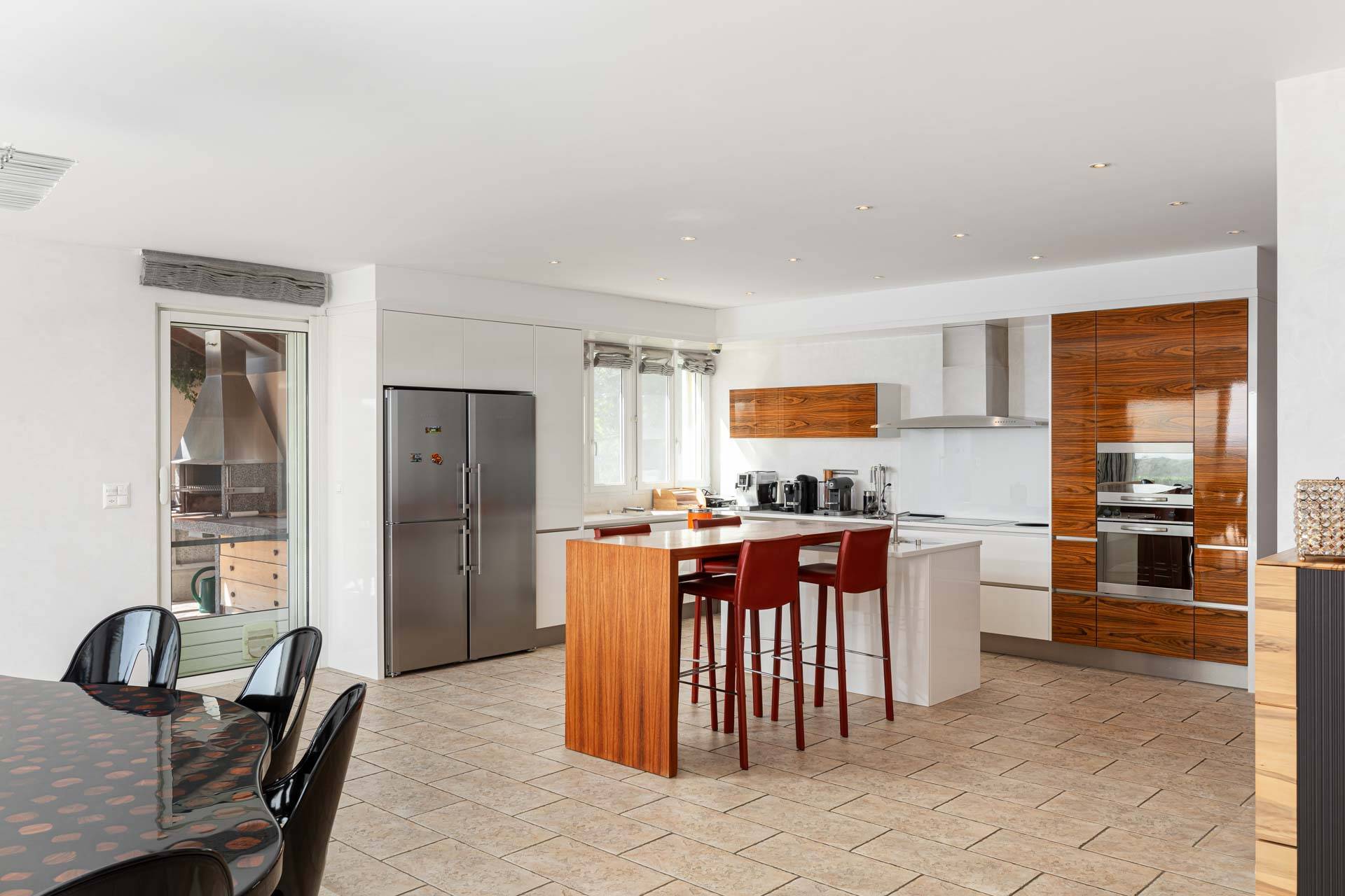 L'extérieur jouit de plusieurs terrasses donc une ombragée et d'un jardin totalement clôturé.