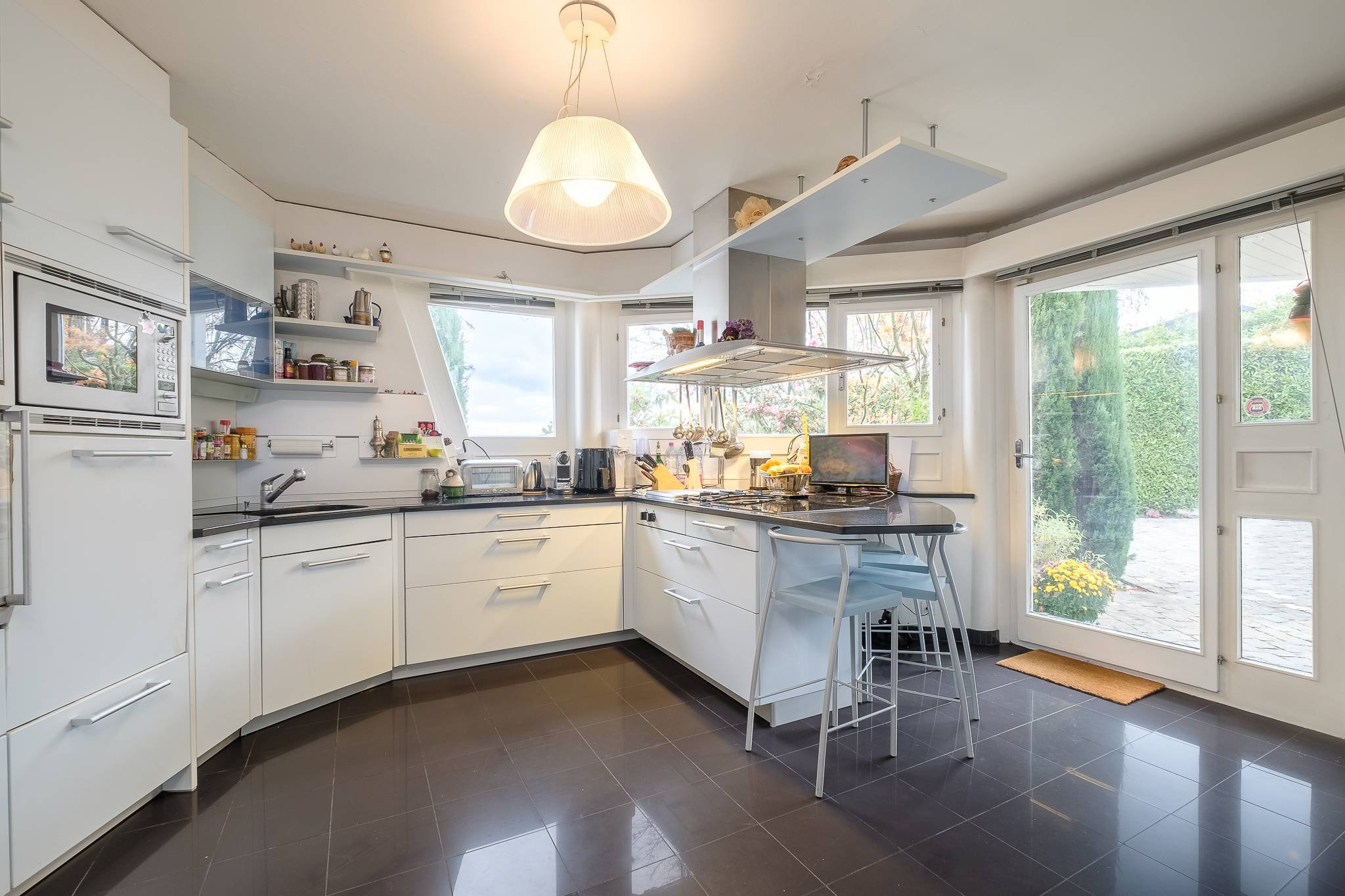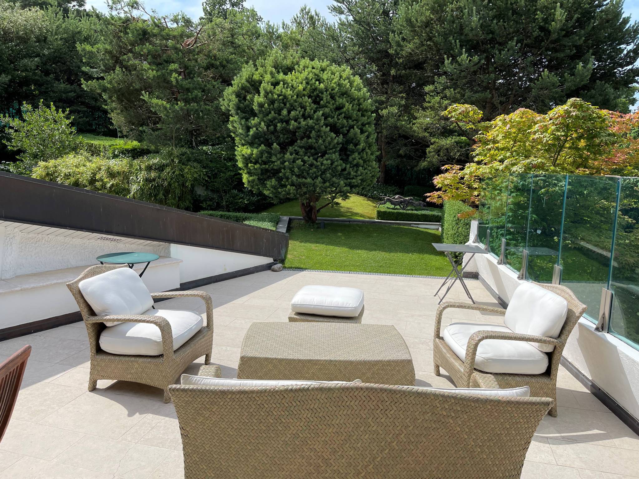 Sise sur une belle parcelle de presque 3'000 m², magnifiquement paysagée et privative, elle profite d'une vue panoramique sur le lac, la ville et le Jura. La maison est dotée de généreux volumes et bénéficie d’une belle luminosité grâce à ses grandes baies vitrées.