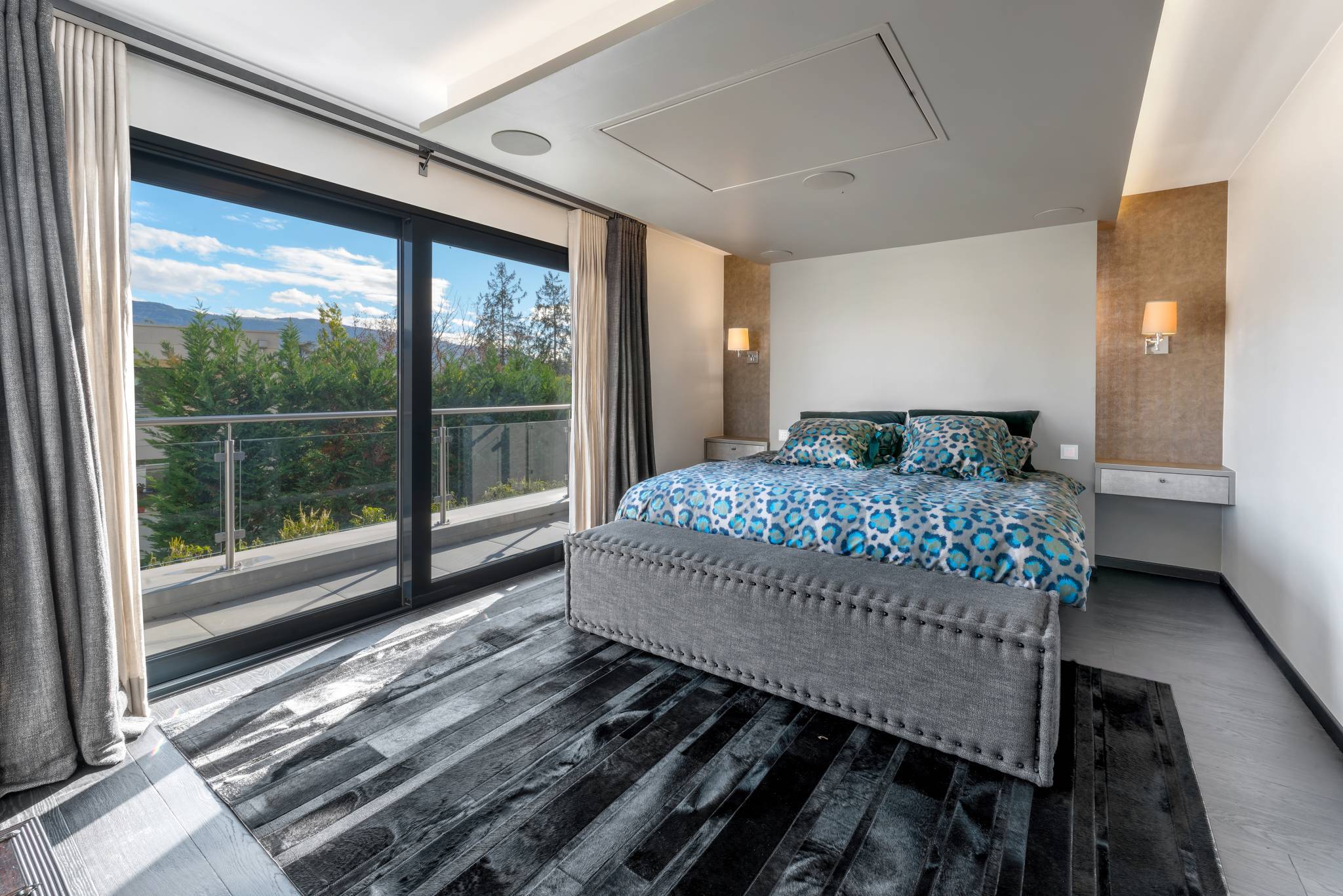- Grande chambre master avec sa corniche et son éclairage indirect, avec accès sur sa terrasse carrelée