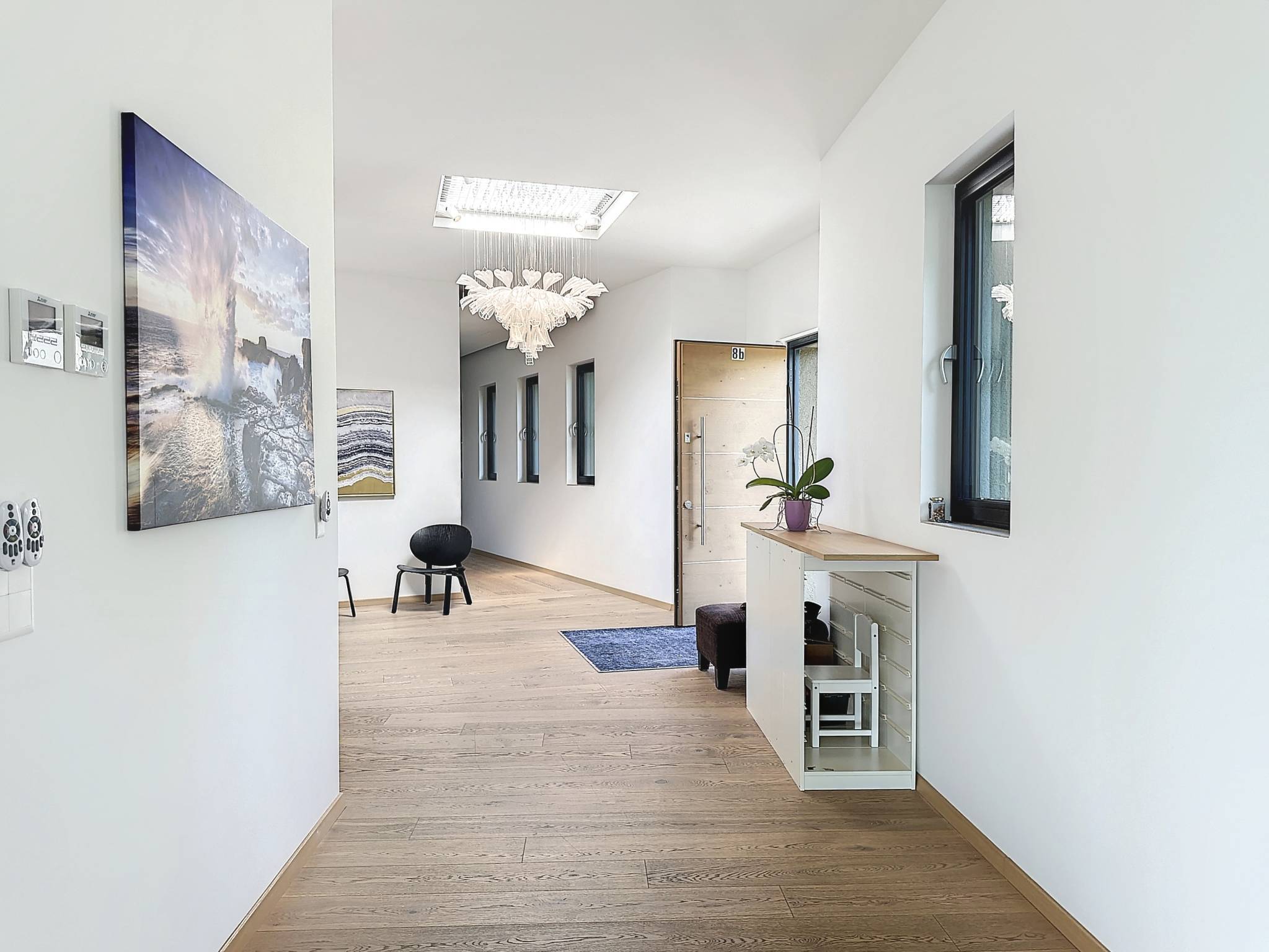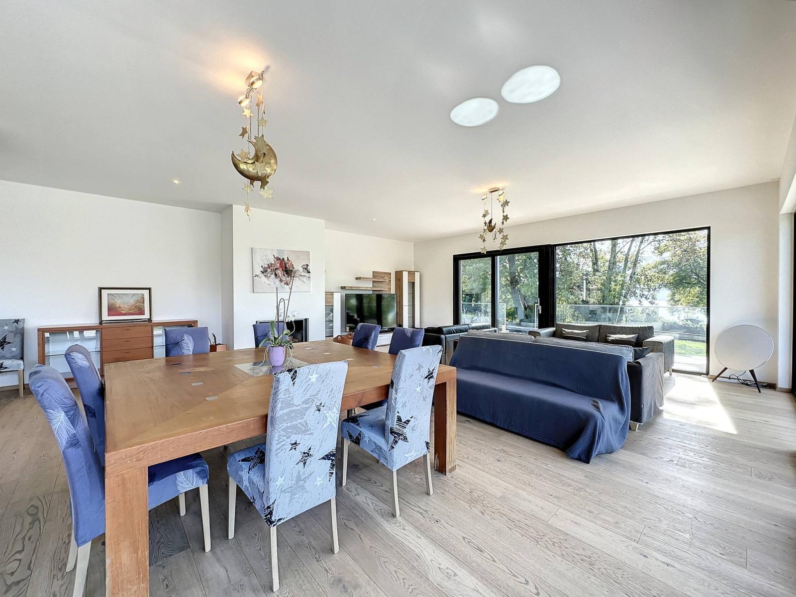 Elle bénéficie d’une très belle vue sur le lac et les montagnes ainsi que d’une luminosité extraordinaire grâce à son orientation sud et à ses grandes baies vitrées.