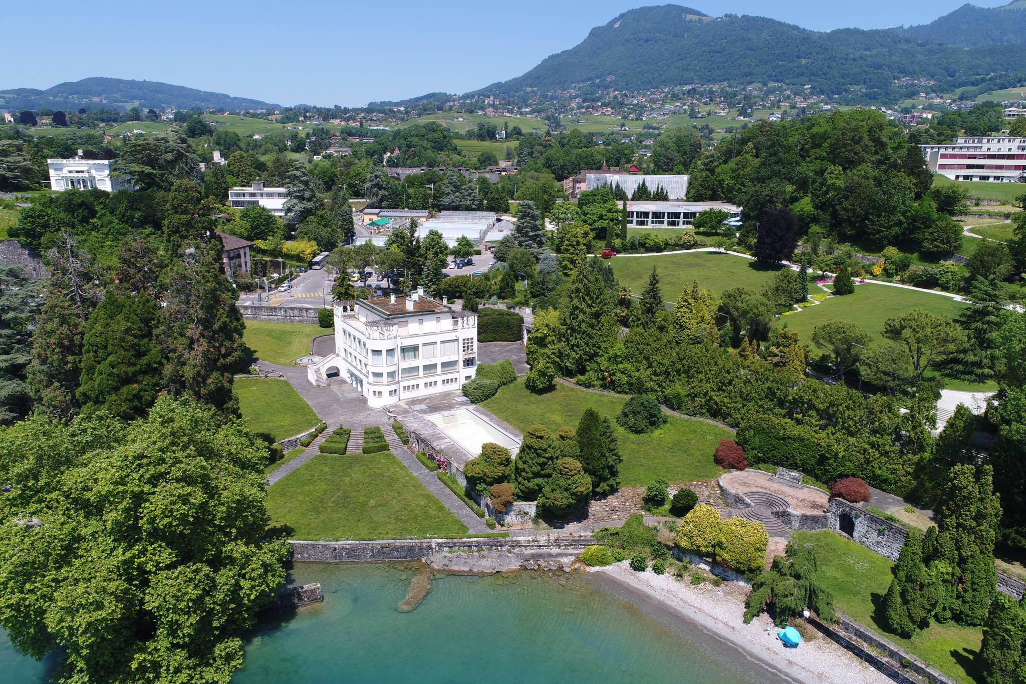 Elle compte environ 1500 m² habitables, sur une exceptionnelle parcelle de plus de 10'000 m² face au lac.
