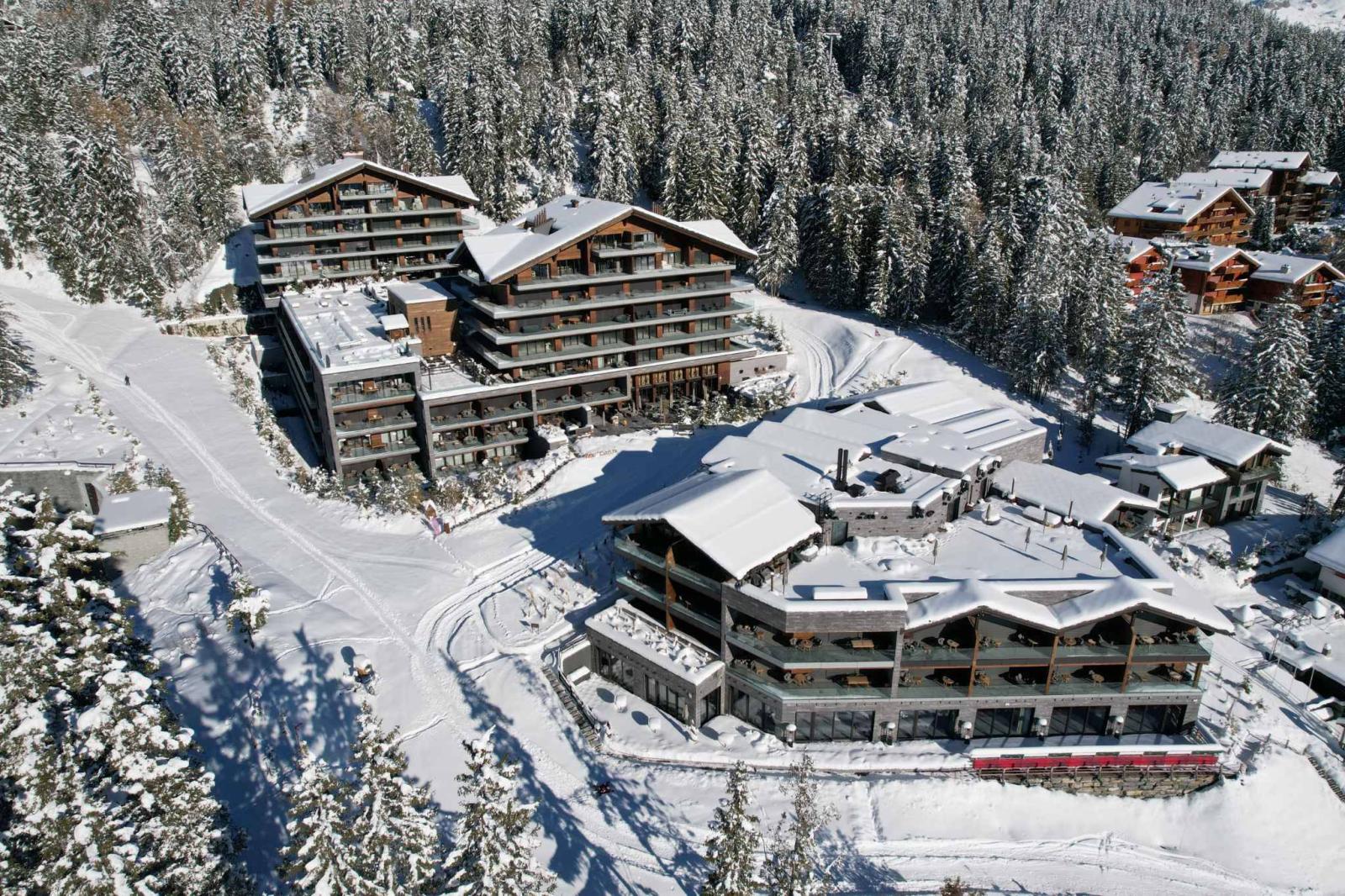 Idéalement implanté au centre de Crans‑Montana, en position dominante sur le village, le complexe Six Senses occupe l’un des emplacements les plus recherchés de la station : Ski In / Ski Out, à proximité immédiate des remontées de Cry d’Er et à seulement 5 minutes du centre de Crans, des golfs, des restaurants et des enseignes de prestige.
