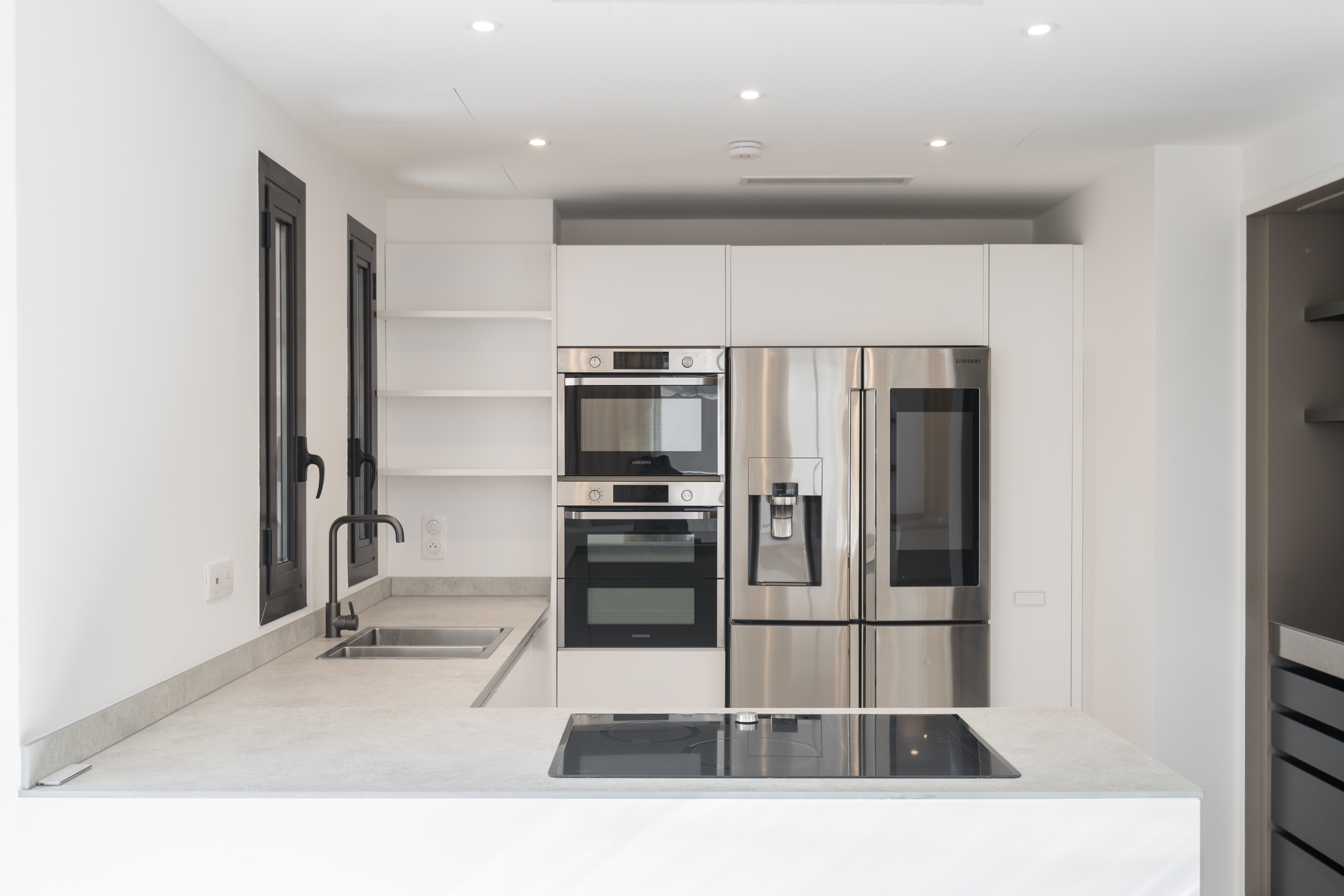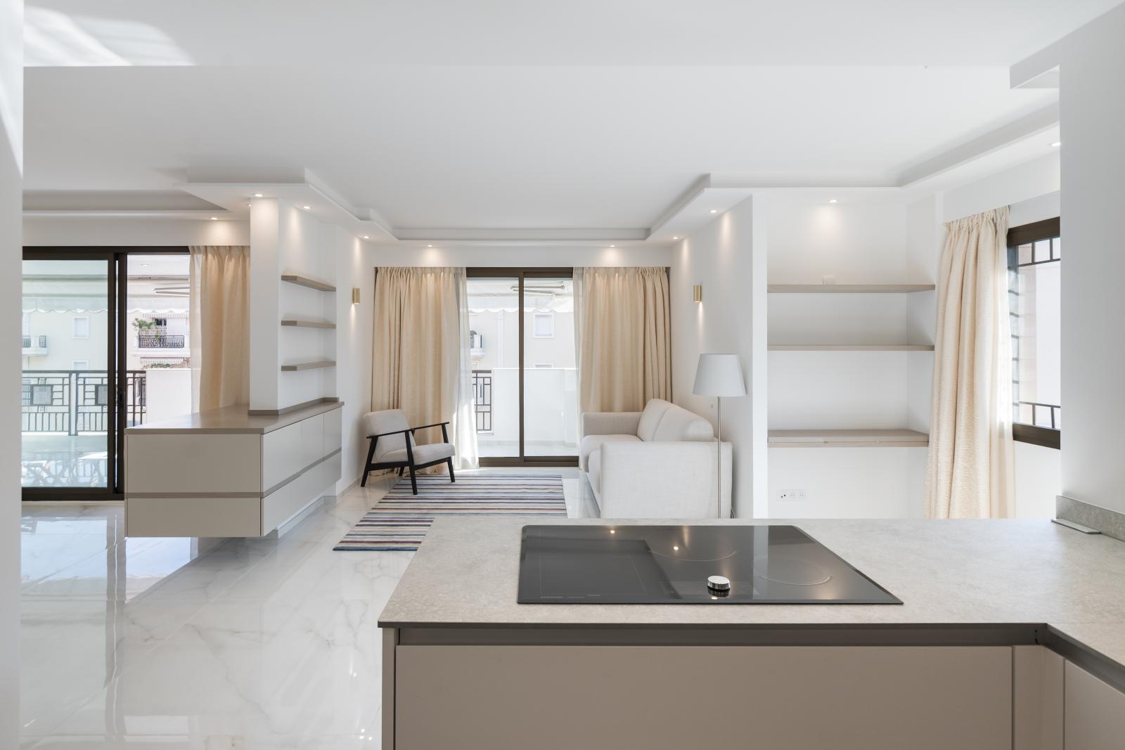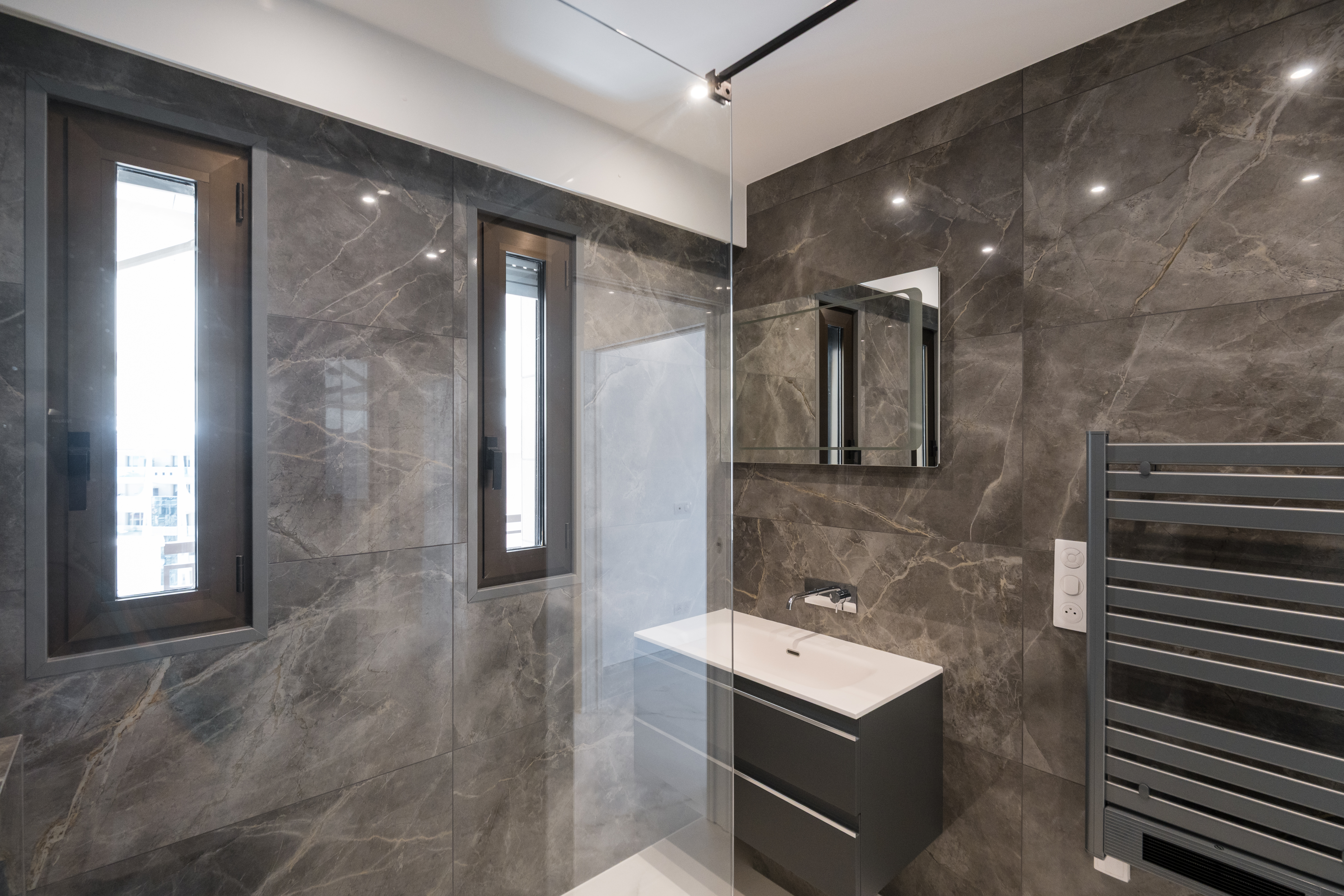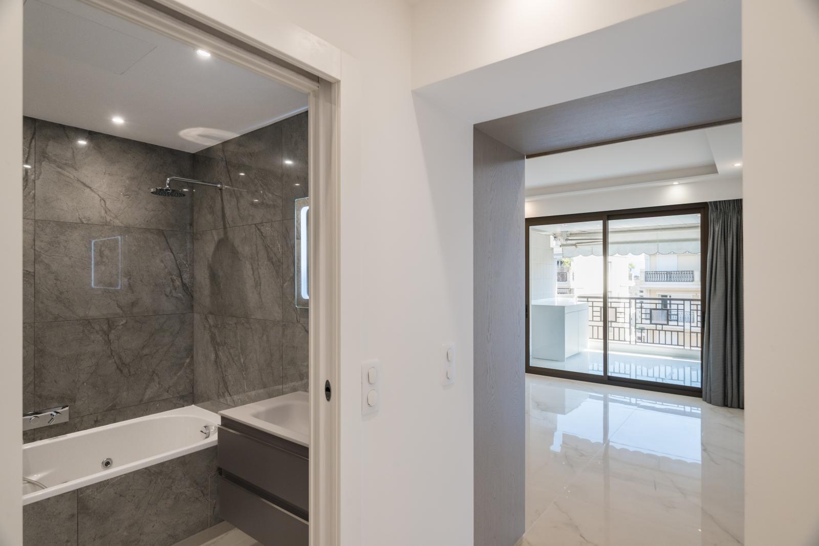 Grand appartement de 4 pièces rénové, composé d'une entrée spacieuse, grand double séjour avec large terrasse, cuisine américaine équipée, 3 chambres avec salles de bains en suite et accès aux extérieurs.