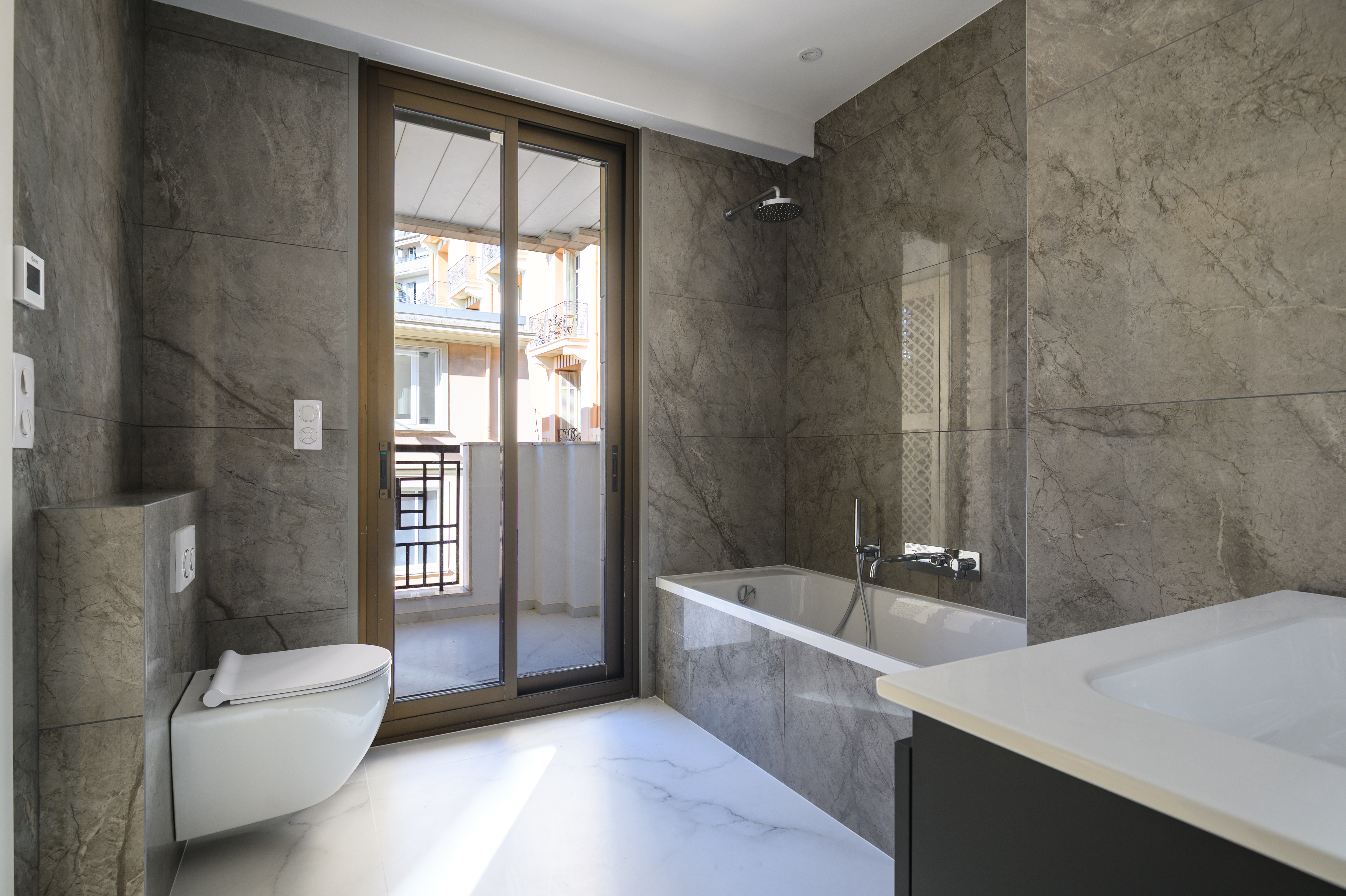 Dans un immeuble moderne du quartier de la Condamine, spacieux appartement de 4 pièces rénové avec terrasse.