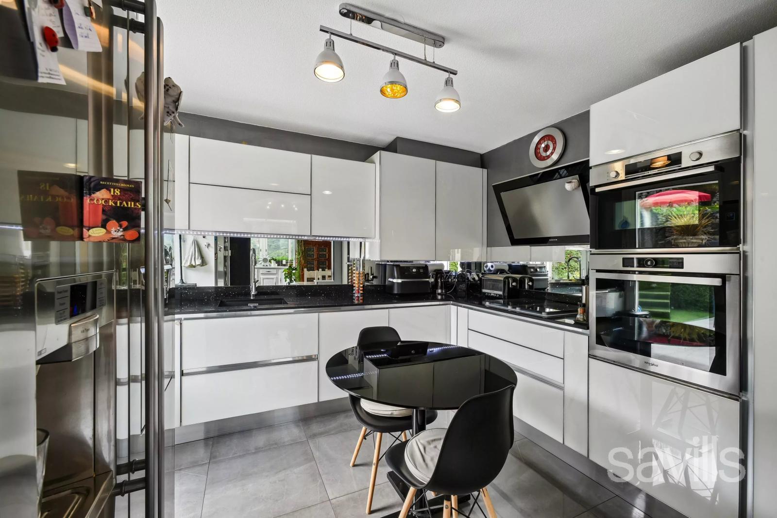 La maison est également dotée de la climatisation pour vous rafraîchir pendant les mois d'été. Ce havre paisible est un véritable bijou, combinant élégance, technologie moderne et tranquillité, pour une qualité de vie exceptionnelle dans une région prisée.