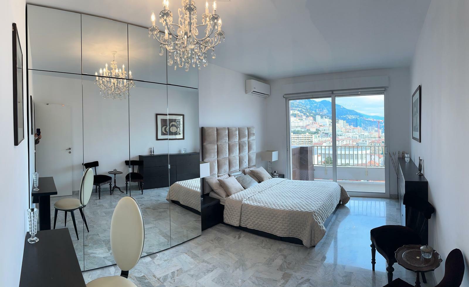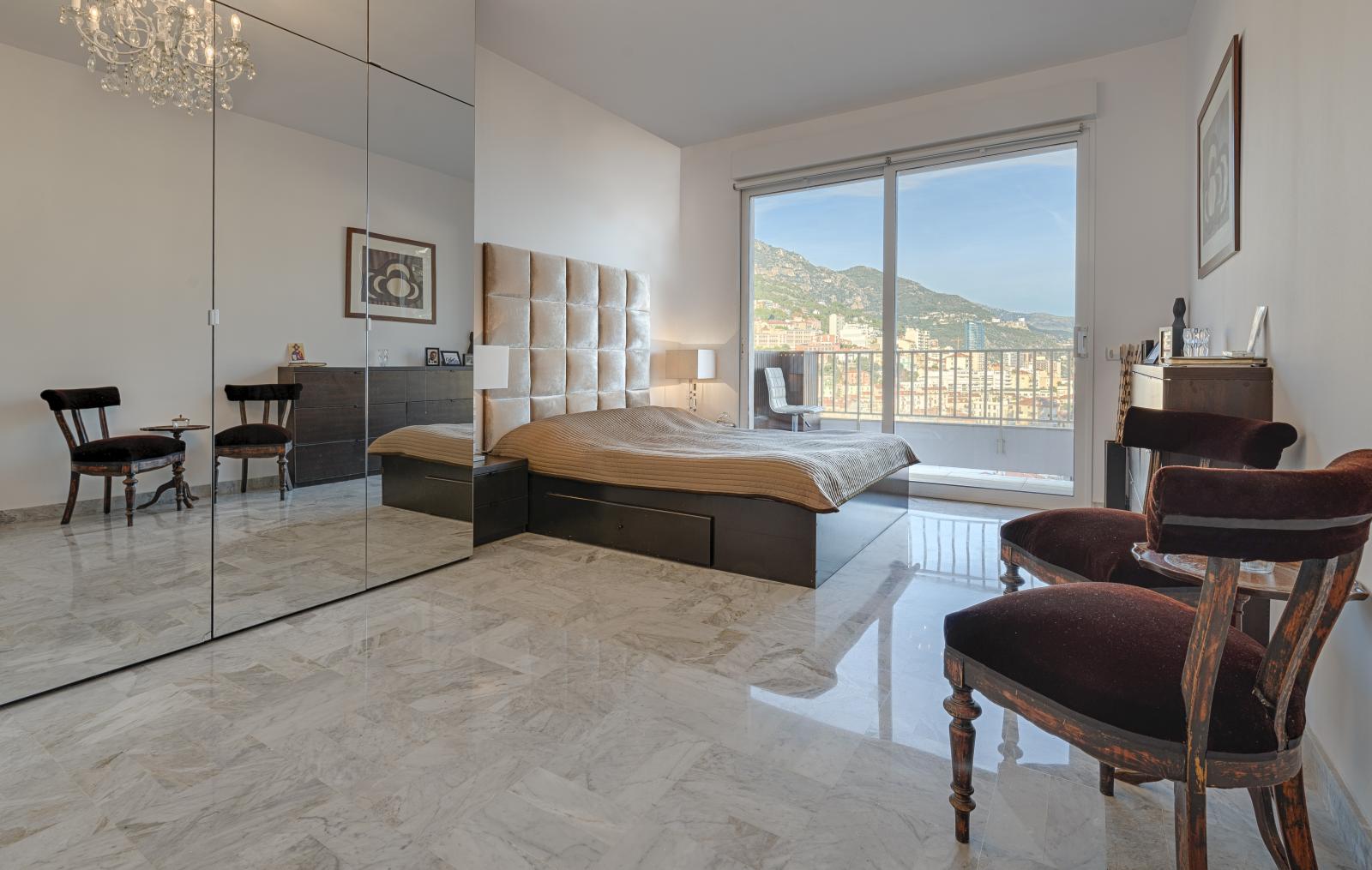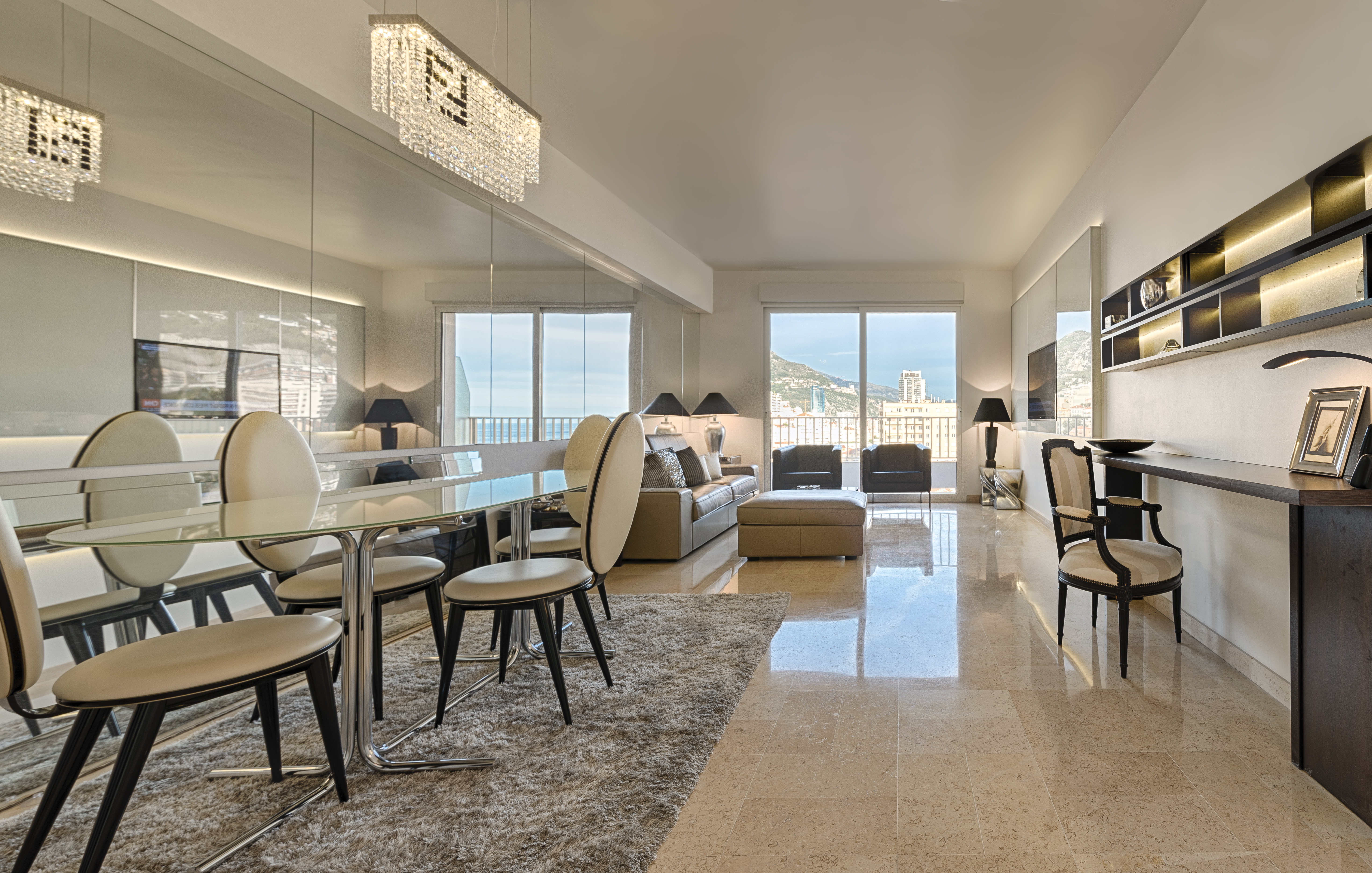 L'appartement est situé dans une rue calme du Jardin Exotique, dans un immeuble dominant la Principauté. Sa terrasse offre un beau panorama sur la mer et le Cap Martin.