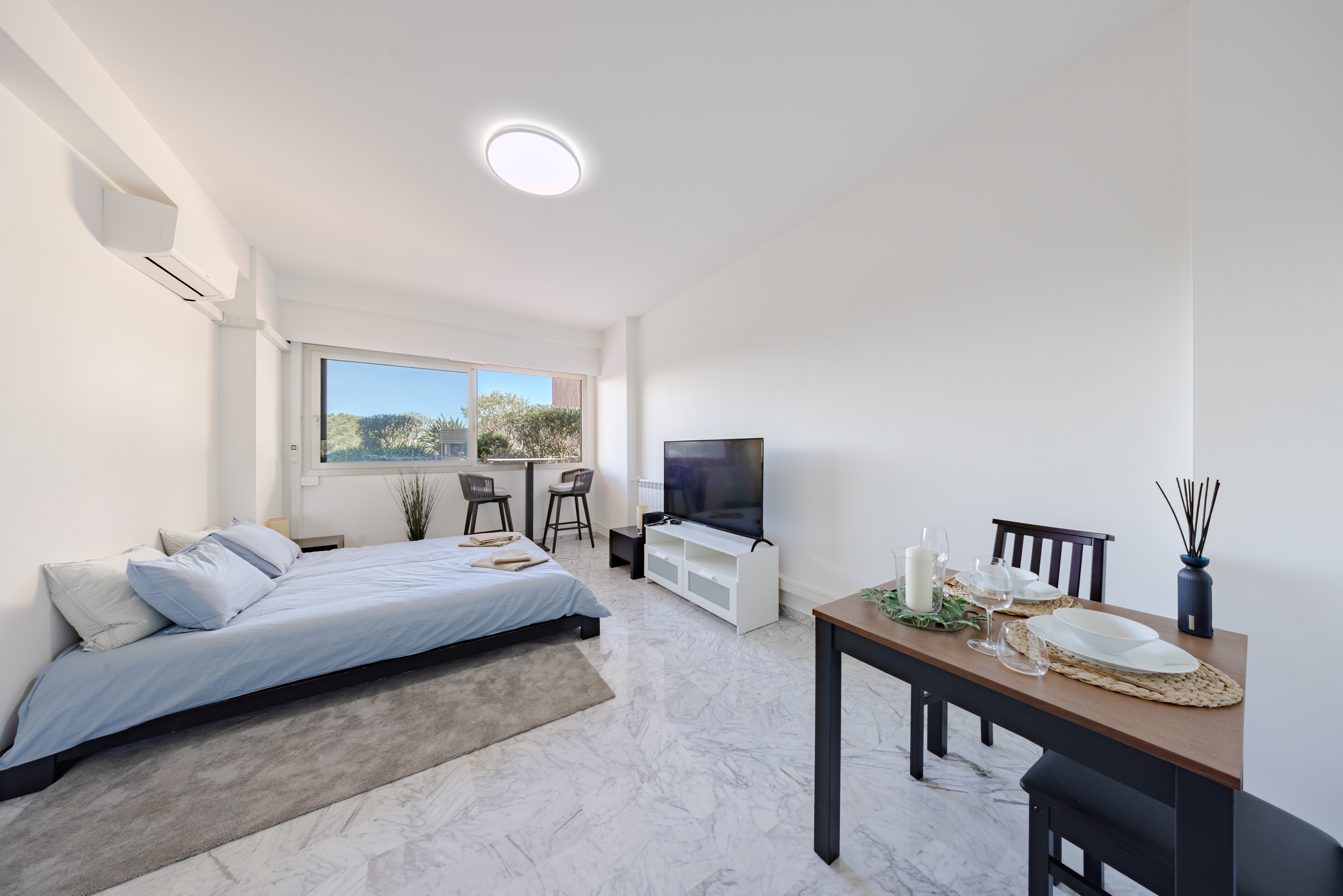 Spacieux appartement de 36m² situé dans l’immeuble "Le Shangri-La", en excellent état. Ce bien comprend une salle d’eau avec baignoire et WC séparé, un coin cuisine entièrement équipé neuf, de grands placards intégrés, ainsi qu’une large fenêtre offrant une vue imprenable sur la ville et le port. Il est également équipé d'un système d'air conditionné réversible. Très lumineux, cet appartement bénéficie d'une belle exposition. La résidence, idéalement située face au port, dispose également d'un service de sécurité pour assurer votre tranquillité.