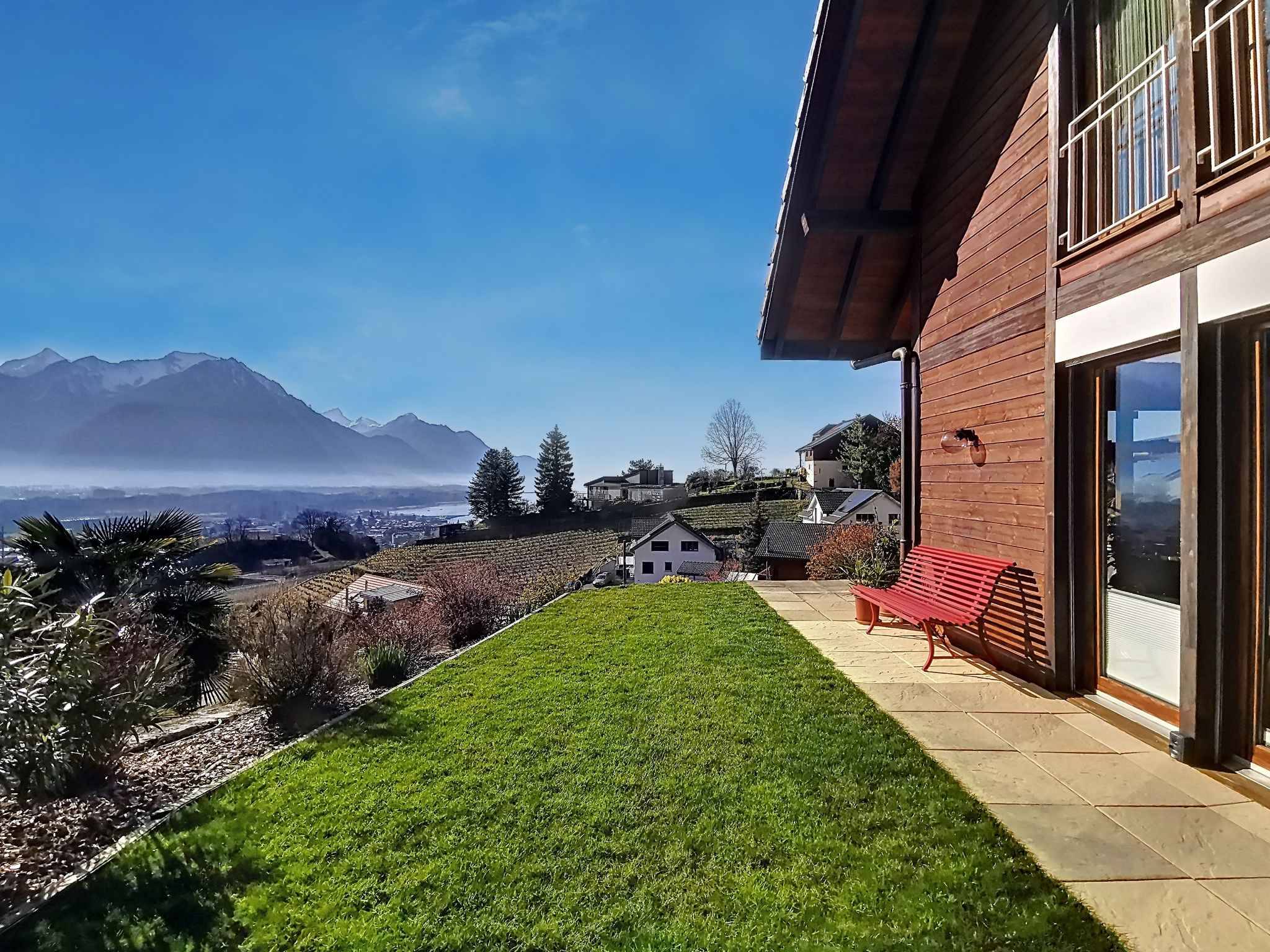 La propriété bénéficie d’une jolie vue sur le lac Léman, les montagnes et le Chablais.
